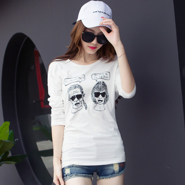 年秋裝新品韓版長袖印花T恤女 圓領(lǐng)直筒百搭T恤 /