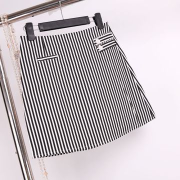 實拍 夏裝新款小清新百搭條紋小短裙雙??蹢l紋半身裙女A字裙 /