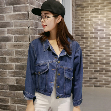 實(shí)拍2303#春季新款韓版BF風(fēng)經(jīng)典休閑寬松短款長(zhǎng)袖牛仔外套 /