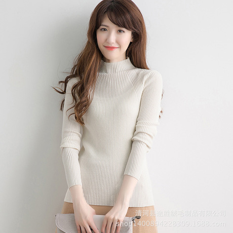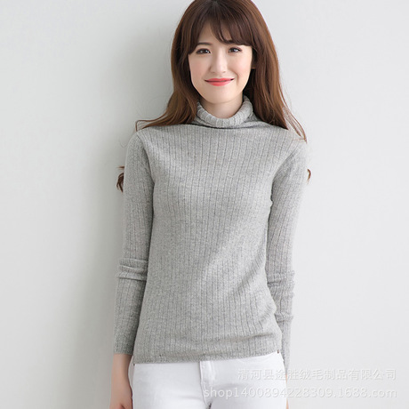 秋冬季新款女士半高領(lǐng)抽條羊絨衫短款羊毛衫韓版針織衫修身毛衣 /