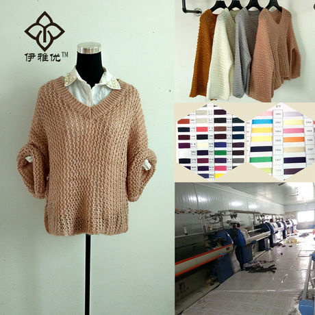 汕頭淘工廠毛織粗棒針寬松V領(lǐng)套頭馬海毛毛衣看板下單可來(lái)圖來(lái)樣 /