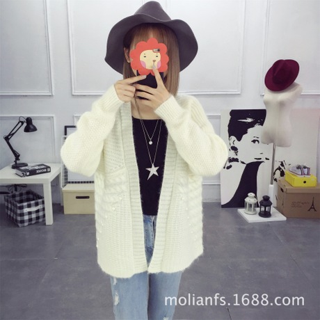 時尚新款女士針織毛毛小開衫 修身純色短款針織女裝外套批發(fā) /