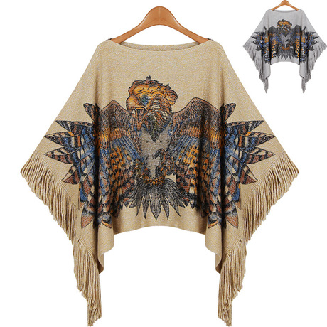 廠家直銷歐美老鷹寬松大碼蝙蝠流蘇斗篷毛衣外套女披肩圍巾針織衫 /