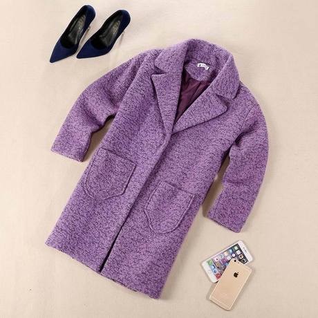 冬裝新款女裝長袖西裝領(lǐng)羊毛外套長款毛呢大衣廠家一件代發(fā) /