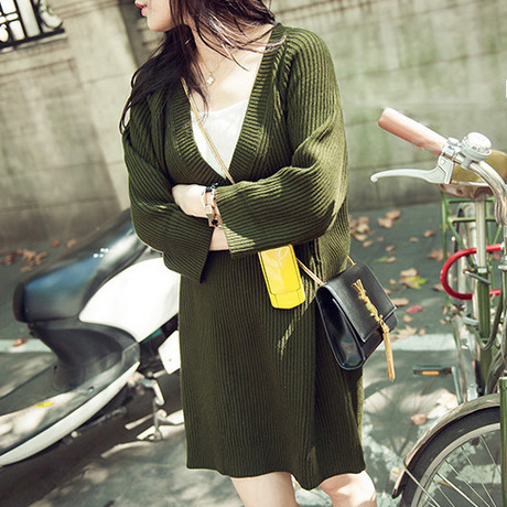 韓國(guó)東大門新版春套頭打底毛衣裙 純色大深V領(lǐng)中長(zhǎng)毛衣女廠家直銷 /