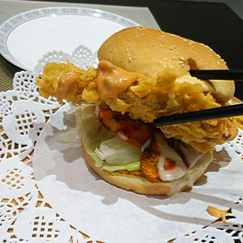 簡介: 骨貨仔炸排骨-秘制香辣雞腿漢堡 圖上所展示的是骨貨仔炸排骨推出的秘制香辣雞腿漢堡。秘制香辣雞腿漢堡選用清脆爽口的蔬菜,黃金酥脆的雞肉,熱辣紅椒風(fēng)味,讓你的味覺沸騰起來,一口下去,風(fēng)味十足!表面金黃酥脆爽口,精心烹制,口感鮮嫩多汁,具有燒烤芳香,讓你一次過足癮!骨貨仔炸排骨是你加盟的好選擇。