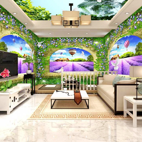 圖片中所展示的是美屋定制養(yǎng)生墻飾-鮮花裝修效果圖,唯美清新,顏色鮮艷的各類鮮花和綠色植物,墻面逼真,仿佛置身于花海當(dāng)中。家具和燈具的色彩都比較淡雅,也很有質(zhì)感。這款鮮花裝修效果圖的亮點(diǎn)就在于墻體和天花板,墻紙上的鮮花和綠葉都很逼真,溫馨,寧?kù)o。