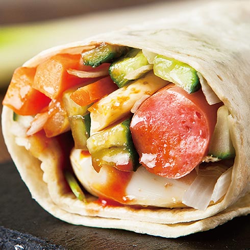 圖上所展示的是鮮糧卷餅王推出的香腸卷餅?;鹜?、黃瓜與醬料親密結(jié)合,清香留口,美味長留,好吃又營養(yǎng),口感極佳,自制糯米腸外皮烤得焦黃香脆,食后回味無窮!鮮糧卷餅王在繼承中華傳統(tǒng)小吃精品文化的同時(shí),根據(jù)現(xiàn)代人的飲食文化習(xí)慣加以改良,注重健康營養(yǎng)搭配,秘制醬料,卷餅一絕,為獨(dú)家風(fēng)味特色,引領(lǐng)休閑小吃,消費(fèi)時(shí)尚。想創(chuàng)業(yè)加盟就選鮮糧卷餅王。