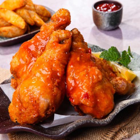 圖上所展示的是叮當雞排推出的韓式炸雞腿。韓式炸雞腿,金黃色的外觀,外酥里嫩、鮮香多汁的口感,撲面而來的香氣,總是惹的人食指大動。外皮被濃郁的醬料包裹著,一口下去酥脆無比,里面的雞肉還有些燙、鮮嫩多汁。每一塊炸雞都脆而不老,沒有很多面粉包裹,每一塊都有汁水,醬香味很甜很入味。叮當雞排加盟首選項目。