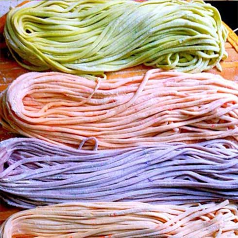 圖上所展示的是香莉來五谷鮮包機(jī)推出的蔬果彩色面。蔬果彩色面不僅保持了蔬菜及水果的天然本色,而且沒有影響面條本來的特性和筋力,并徹底改變了我國面制品單一顏色的老面孔,絕對是“色、香、味、形”的完美結(jié)合。不同顏色的面條,就是不同蔬果做的,營養(yǎng)價值也不同。想加盟蔬果彩色面就到香莉來五谷鮮包機(jī)。