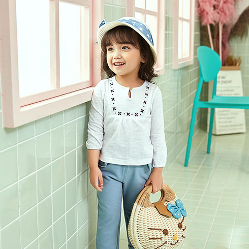 陌小樣童裝-小清新純色花紋衫