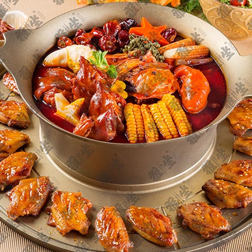 圖中展示的是雅坐涮烤鍋王-麻辣雞翅。雅坐涮烤鍋王創(chuàng)業(yè)投資,總部派遣專業(yè)老師傳授全套生產流程和制作方法。還有團隊負責制定選址方案,維持客流量及店鋪發(fā)展。對于經驗匱乏的投資者,運營團隊1對1培訓,為加盟商保駕護航。同時,總部在各大媒體投放廣告,提供品牌宣傳,擴大聲譽。核心料包由公司建立的物流中心,讓原料、設備快速到店。